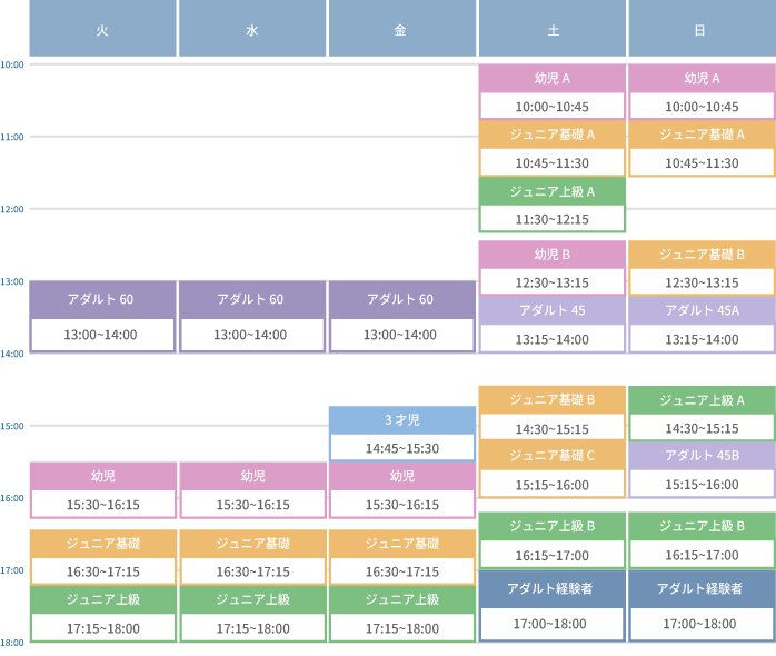 レベルチェックは行いませんが、内容はジュニアクラスと同様です。