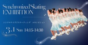 3/1(日)にシンクロナイズドスケーティングジュニアチームによるエキシビションを開催します!大人数で滑る迫力をぜひ間近でご覧ください。